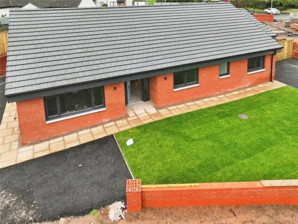 This modern, new build bungalow at Haggsmount, Ecclefechan was constructed by Lewis Murray Builders and successfully sold by Yopa. JNR were delighted to be involved in the project, fitting a green/grey Brazilian roof slate, finished off with a black capped angled ridge.
